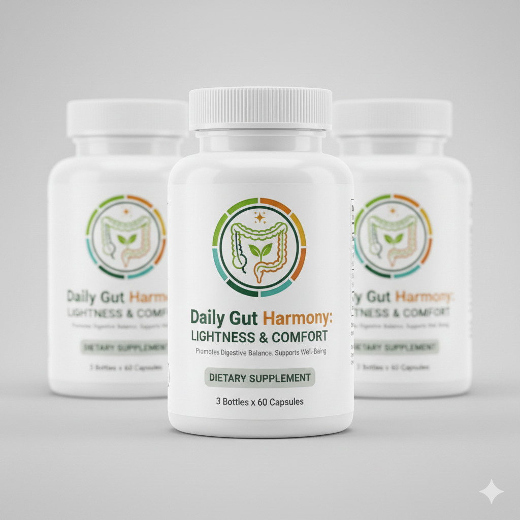 Daily Gut Harmony is a natural dietary supplement designed to support digestive comfort and promote a feeling of lightness after meals.